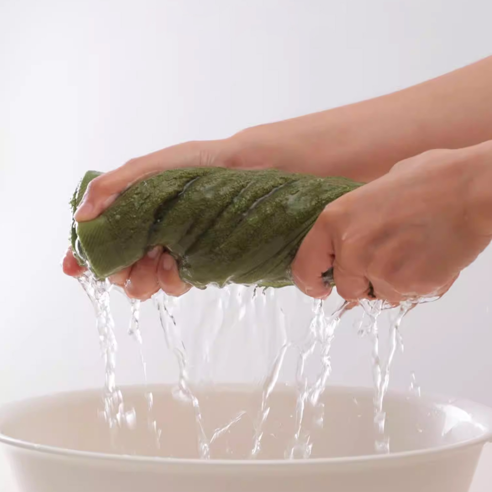 Made of natural materials, stays fresher longer. Do not use any fabric softeners or conditioners with our towels, they promise fluffy and soft towels but laundry additives coat towels with an invisible chemical film and block their natural ability to absorb water and leave a waxy buildup.